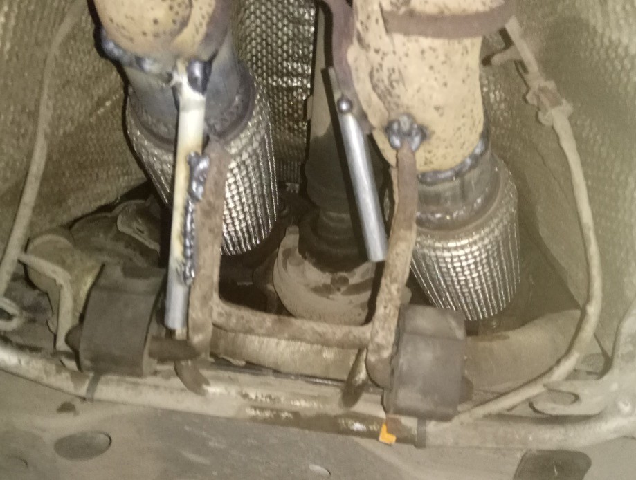Диагностика выявила разрушение нижних катализаторов. Заменили нижние катализаторы на пламегасители из нержавейки
